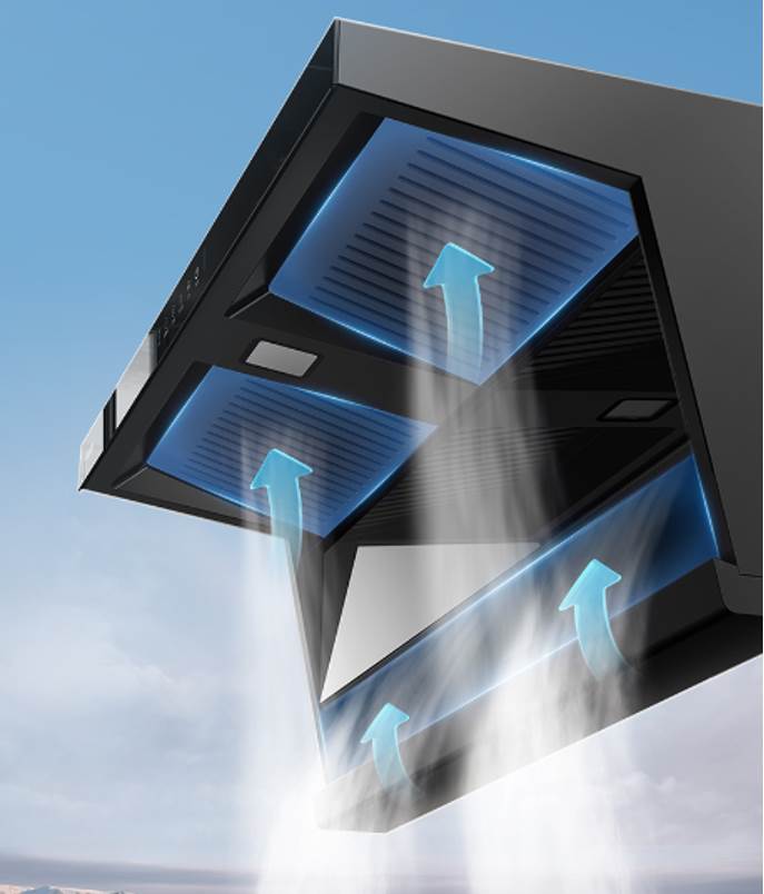 基于对用户需求的深入探究,华帝厨电精准捕捉到用户这一痛点,强势推出小飞翼K6烟机,采用创新的顶侧双吸设计,顶部和侧面共设有三个吸烟口同时吸烟,形成了全方位、多角度的拢烟网络。这种设计使得油烟在产生的瞬间即被迅速吸走,有效避免了油烟在厨房内的扩散和滞留。