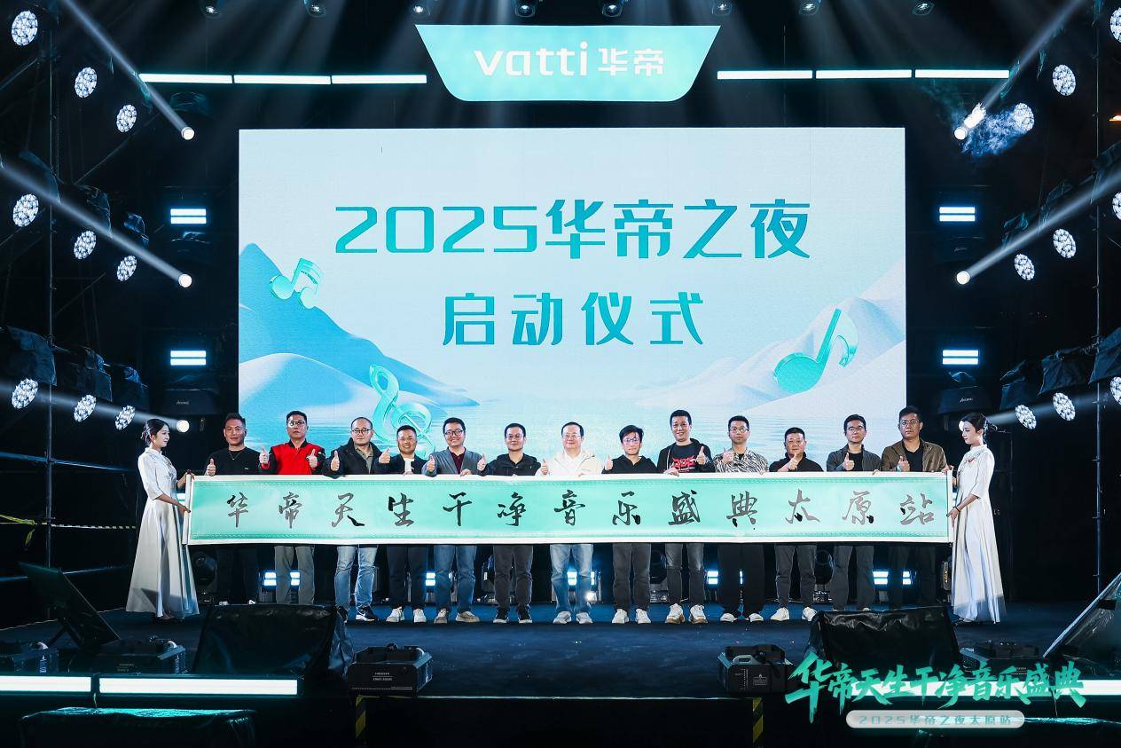 京东五星电器山西河北区域副总经理兼太原京东MALL总经理王广才、家福乐(山西)企业管理集团有限公司总裁武博雄、华帝股份副总裁王操、华帝股份线下营销总经理潘叶钊等嘉宾共同出席此次活动,并在台上携手启动“2025华帝之夜”。