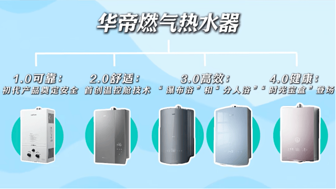 今年三月,华帝在襄阳举办发布会,推出可以“以水养肤”的美肌浴热水器。华帝对“美肌浴”的锁定,是其长期技术沉淀以及深入用户洞察的结果。当我们回顾热水器的迭代历程时,会发现华帝始终走在行业前列。