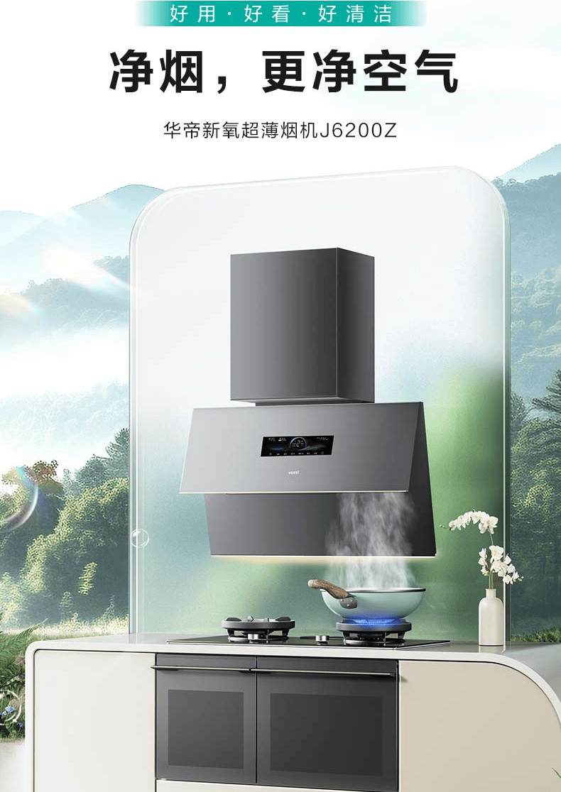 在情绪疗愈层面,华帝将“治愈之净”融入产品设计中,从美学和时尚的维度满足消费者的审美情趣。在“净时尚”理念的引领下,华帝所推出的产品在满足实用功能的同时,更注重营造出一种令人放松、惬意的美感。例如,烟机J6200Z的“耀石灰”玻璃面板搭配晨曦金腰线,以新中式美学赋予厨房艺术感;而智慧家APP的社交化功能,则让烹饪从家务变成分享快乐的互动体验,让“清洁”不再焦虑,反而收获到心灵的“治愈”。